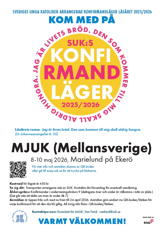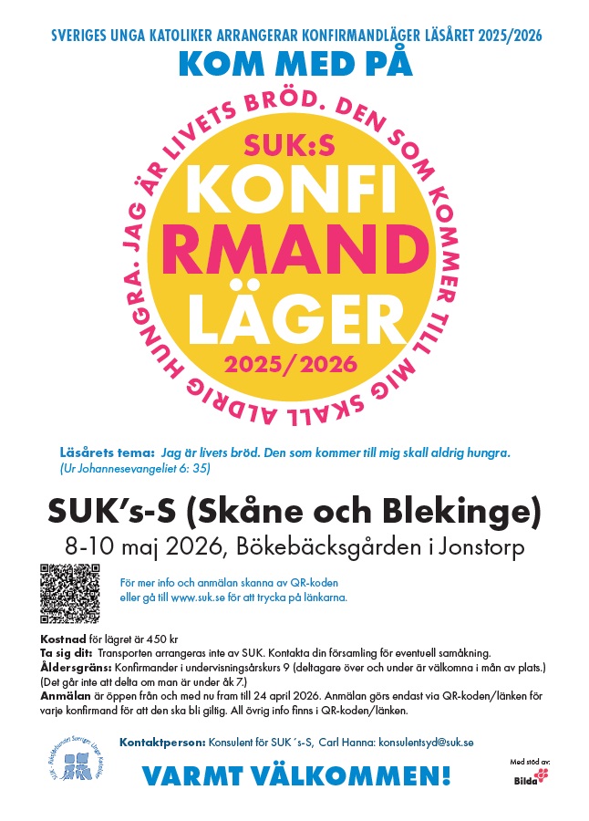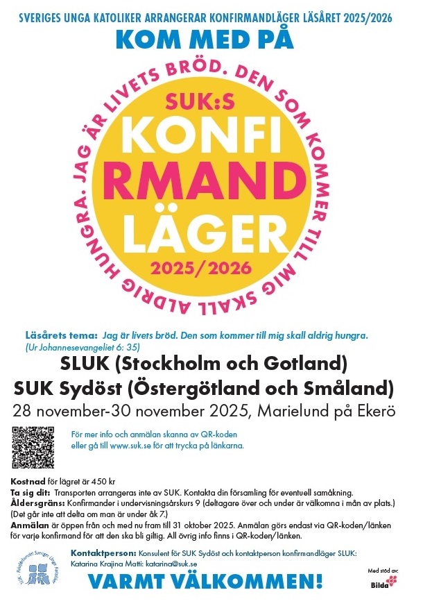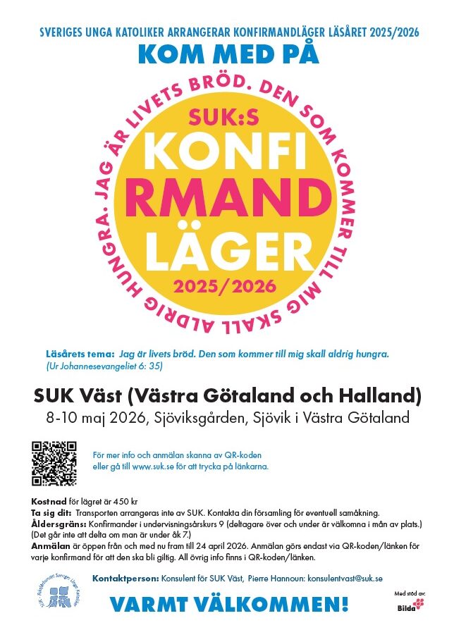 Sedan några år tillbaka har SUK ansvaret för konfirmandlägren i Stockholms katolska stift. Här bifogas ett läsvärt brev från vår Biskop och kardinal Anders Arborelius OCD om dessa läger.